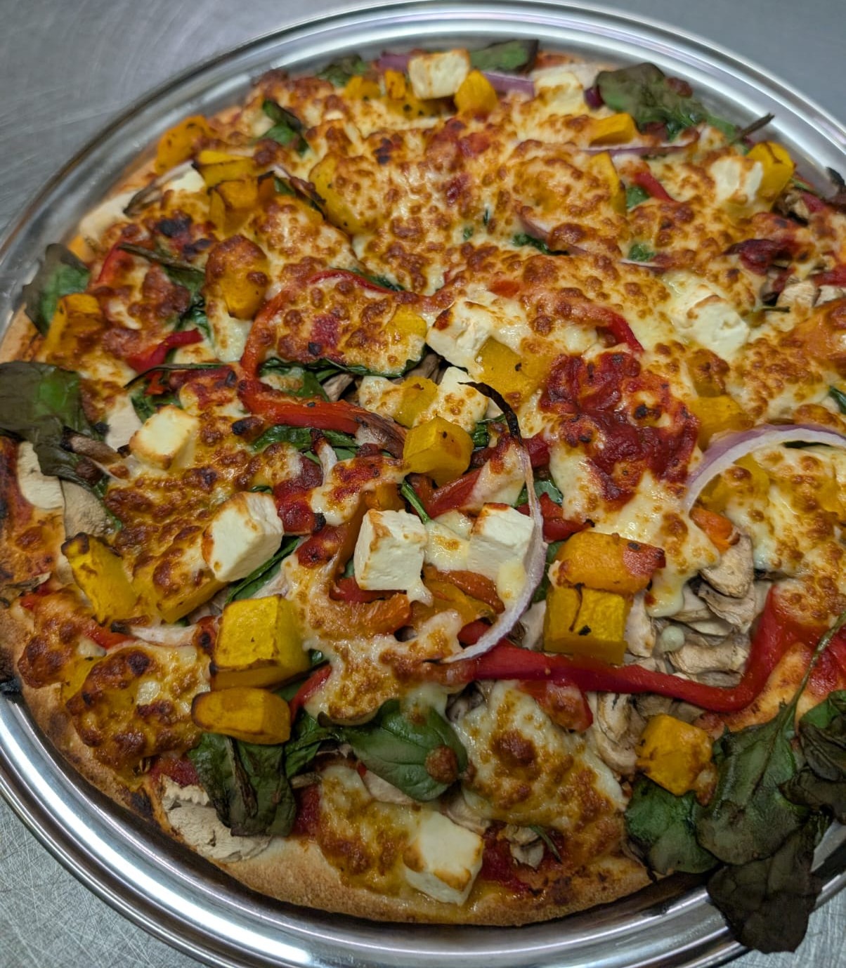 Veggie DelightAdd pizza sauce, mushroom, spinach, pumpkin, roasted capsicum, red onion, cheese, feta×